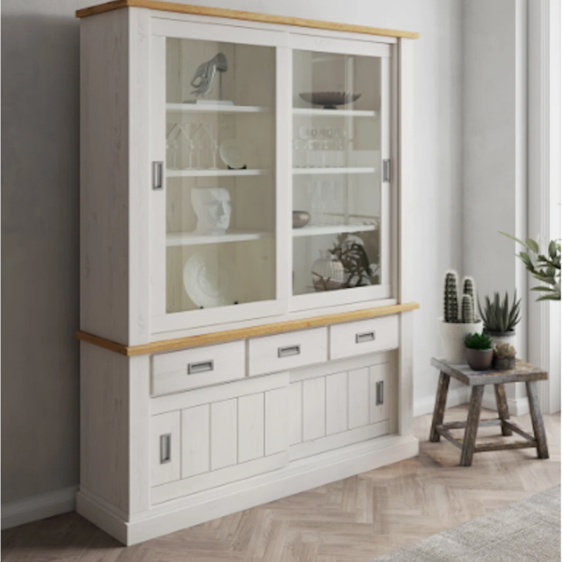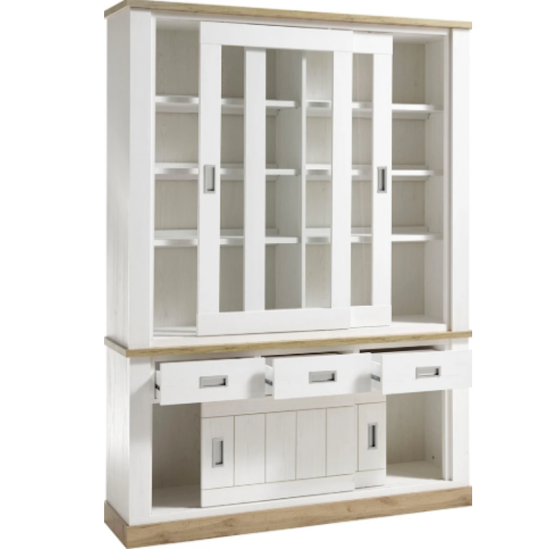 Cristalliera Texas (RITIRO IN NEGOZIO) colore pino bianco e rovere 3 cassetti e 4 ante scorrevoli 150x39,6x204H