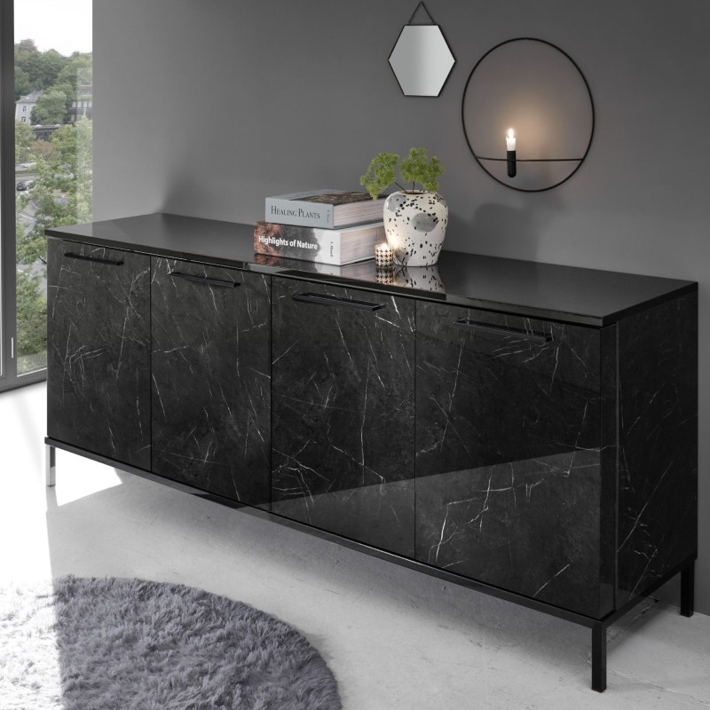 Madia 4 ante in legno nero lucido effetto marmo