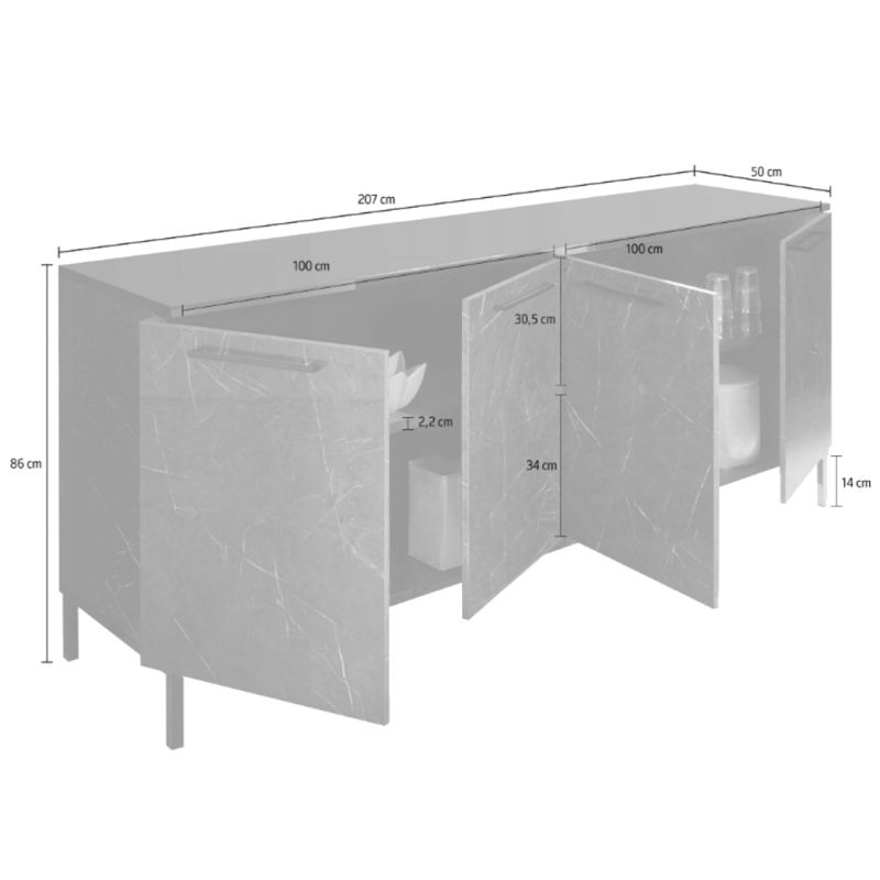 Grazie alle 4 ante capienti e alla struttura solida, questa madia permette di organizzare al meglio gli spazi mantenendo ordine ed eleganza.