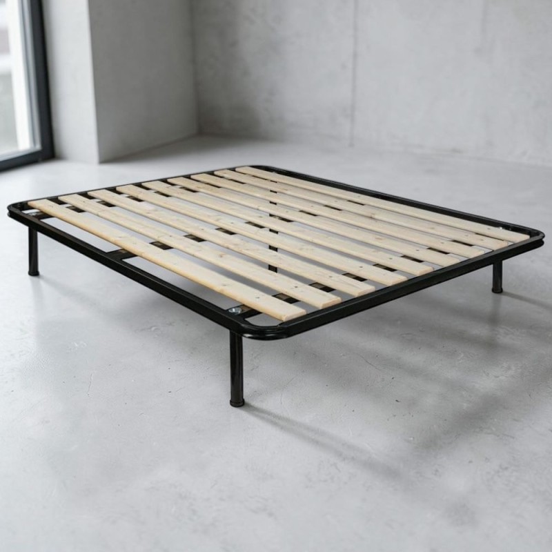 Spessore del telaio perimetrale in metallo di 40x30 mm, dotata di 5 piedi (uno centrale di rinforzo), facilmente avvitabili, resistenti e robusti, con zoccolo antiscivolo.